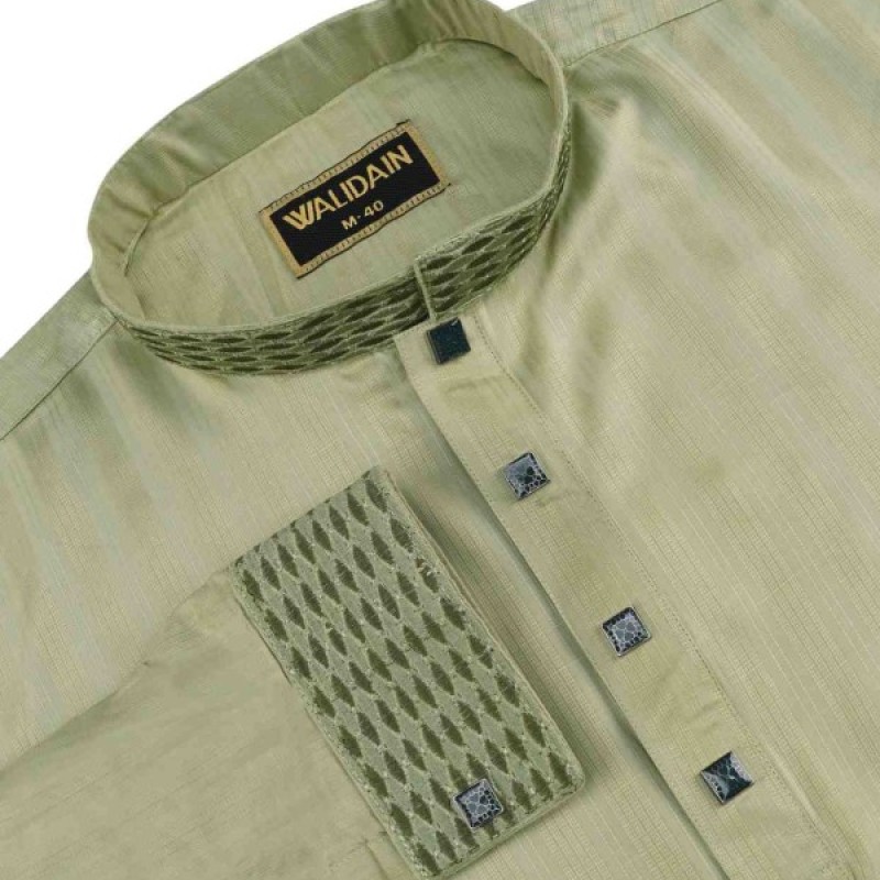 Cotton Ambrodaric Kuf hata Panjabi Lamon Green