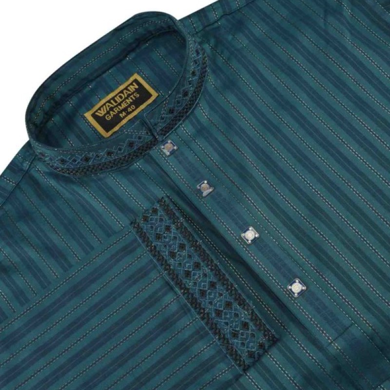 শৈলী: সাধারণত এটি হাঁটু পর্যন্ত লম্বা, সম্পূর্ণ হাতা (ফুল স্লিভ) এবং ব্যান্ড কলার (ম্যান্দারিন কলার) সহ তৈরি করা হয়।